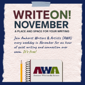 Throughout the month of November, AWA will be offering WriteNow sessions, which borrow their structure from the popular Pajama Writing sessions of AWA Affiliate Sue Reynolds.